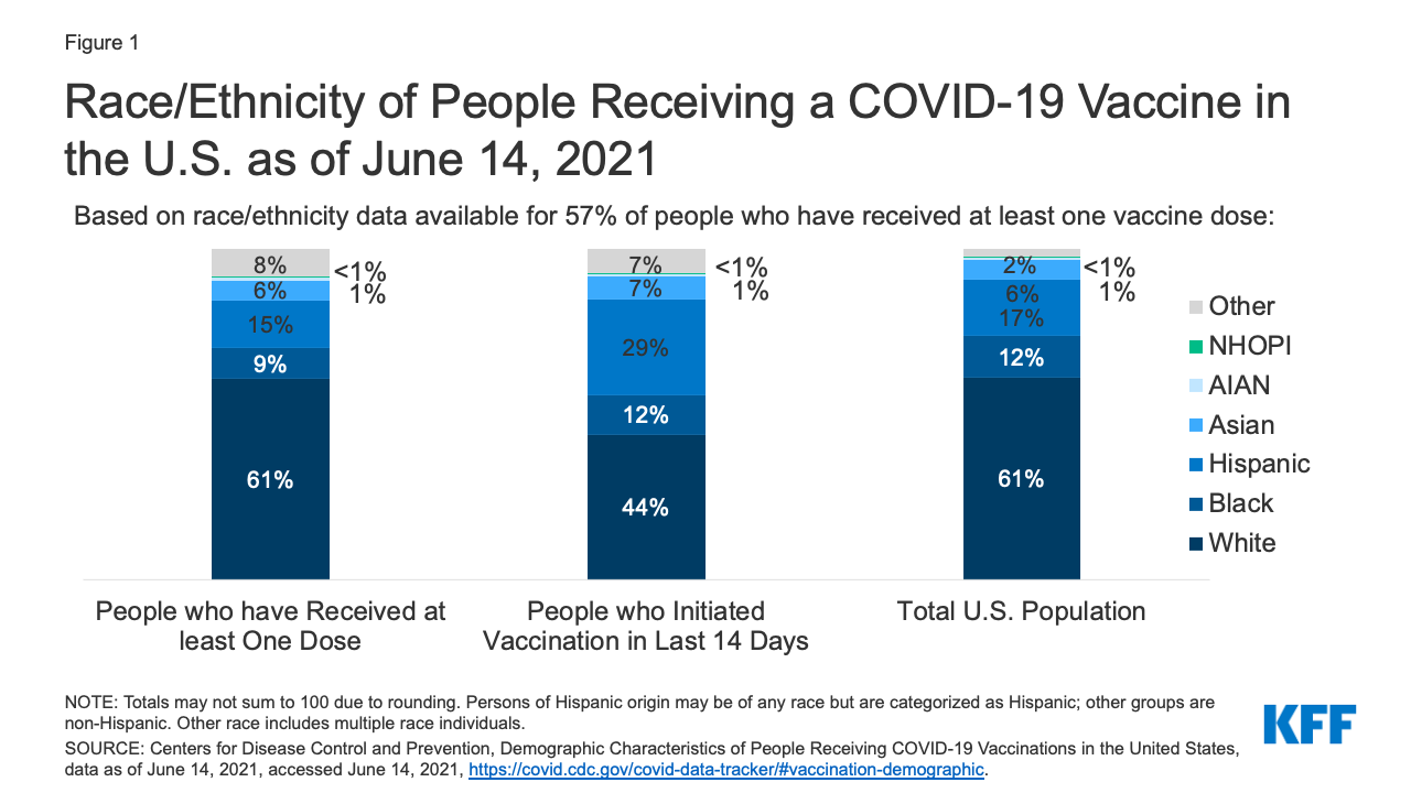 "As observed in prior weeks, Black and Hispanic people have received smaller shares of vaccinations compared to their shares of cases and compared to their shares of the total population in most states."